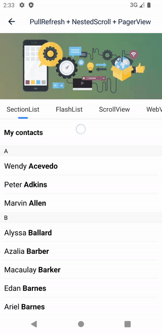 此外,PullToRefresh 支持上拉加载更多,以及所有可滚动视图,譬如 WebView, ScrollView, NestedScrollView。