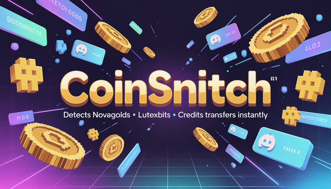 CoinSnitch is a powerful TypeScript library for detecting virtual currency transfers in Discord. Monitor NovaGolds, LutexBits, Credits, and more with type-safe, real-time detection.