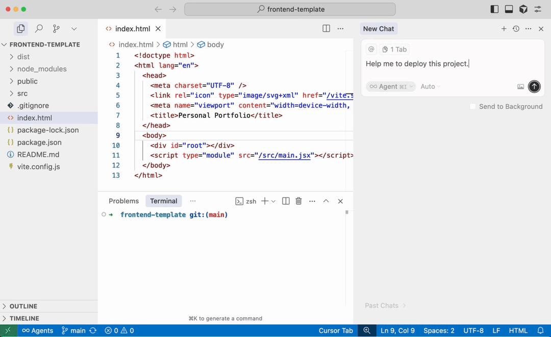 Once you've completed the setup, deployment is as simple as asking your AI assistant: