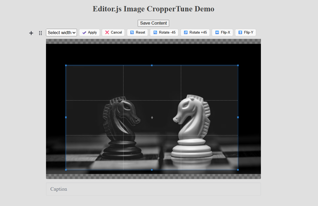 npm install editorjs-image-crop-resizeš Rotate & Flip ā rotate images ±45° and flip horizontally or vertically.