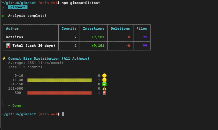 npm install gimpactA visualization tool for Git-based developer activity.
