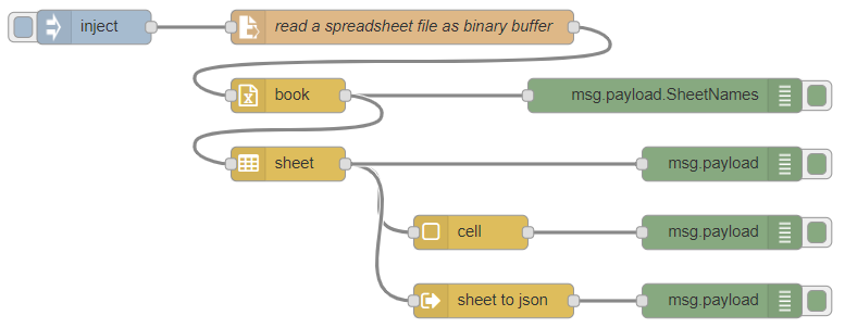 npm install node-red-contrib-spreadsheet-inThis package provides Node-RED nodes to read data from spreadsheet (Excel, ODS, etc.) file.