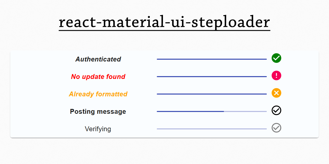 `javascriptimport { StepLoader } from 'react-material-ui-step-loader';