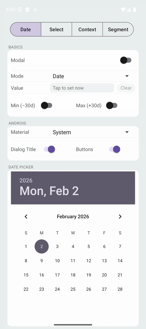 - Support modern platform design systems (Material 3 on Android, system pickers on iOS)