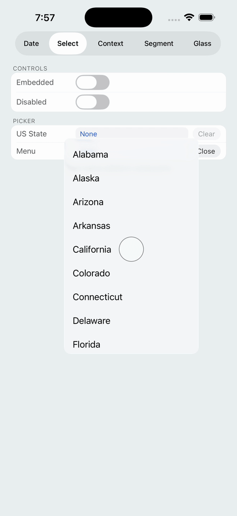 - ContextMenu: imageColor (icon tint)SegmentedControl