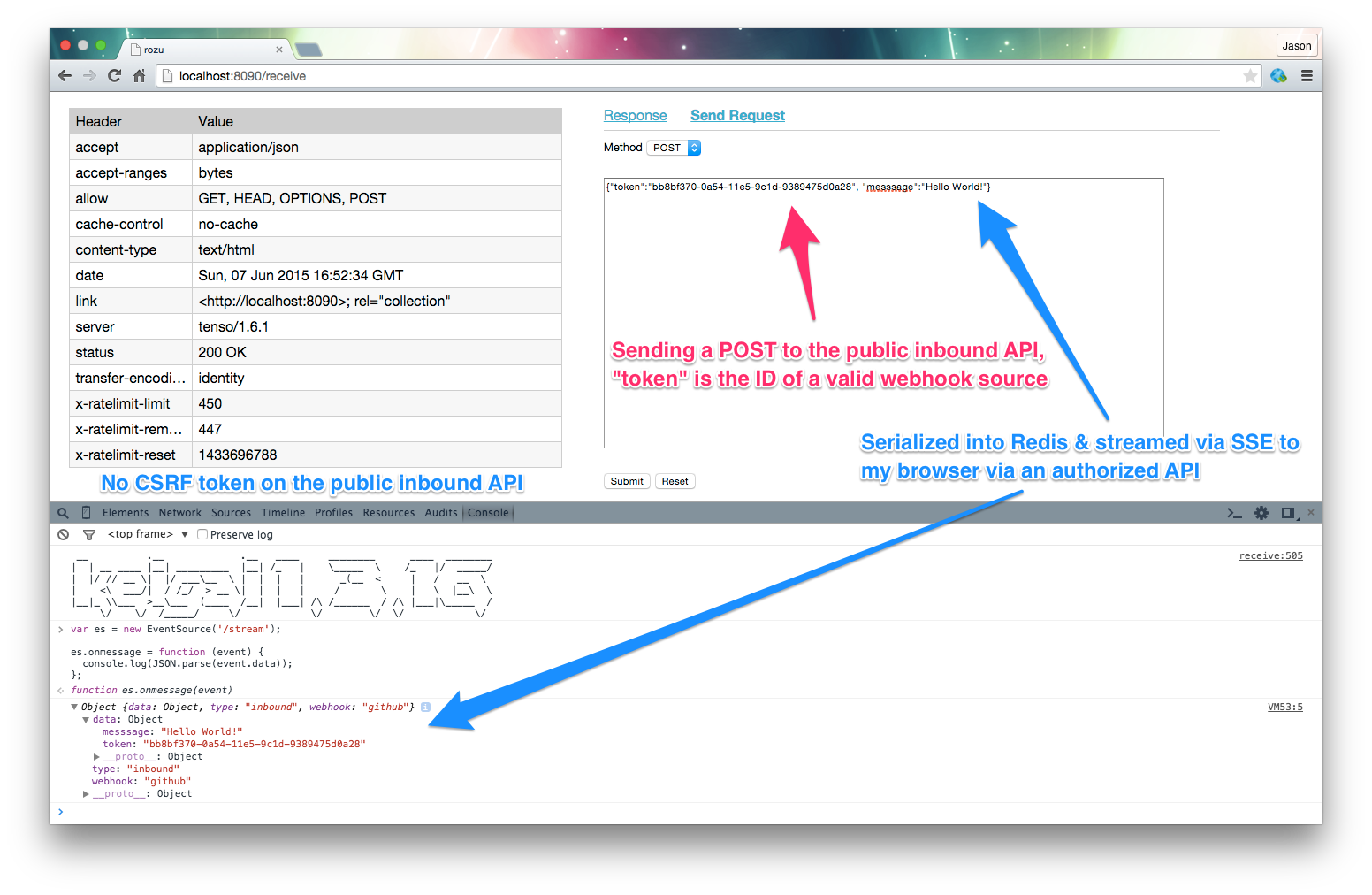 /receive which will accept a JSON or form encoded payload & put it into Redis