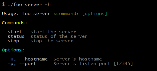 Additionally start and stop commands will inherit options from its parent and will handle --port and --hostname options.