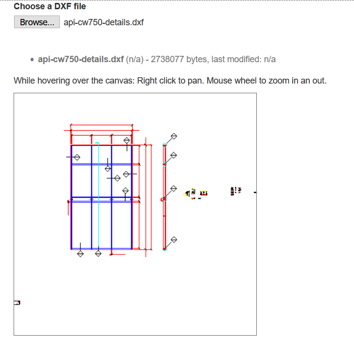 `After performing the steps above, you can see the example at http://127.0.0.1:8080/sample/index.html. You can use the DXF file included in the sample. NOTE: the latest version of http-server will go into a redirect loop if you exclude "/index.html" from the url.
