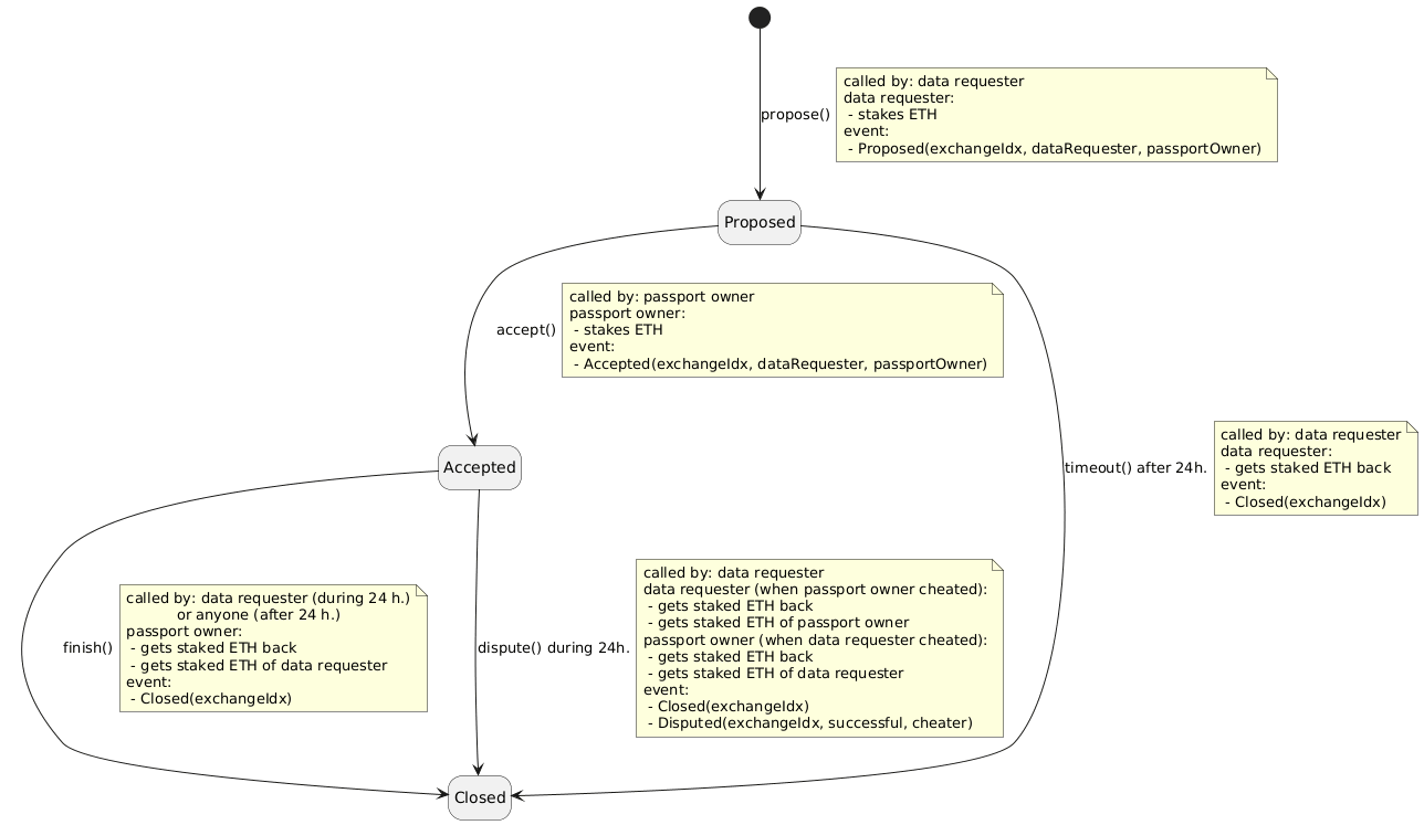 If the digital identity owner ignored the request for the private data exchange, then after 24 hours, the data requester may close the request and return the staked funds by calling PrivateDataExchanger.timeout() method.